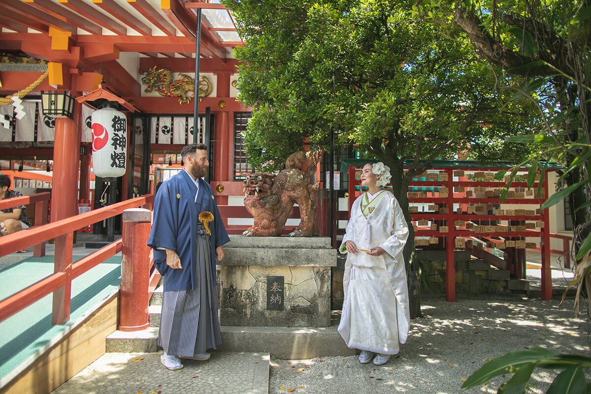 Perched on a hill overlooking Naha Port, Naminoue Shrine holds the highest rank among the Ryukyu Eight Shrines and is revered as the principal guardian shrine of Okinawa.At this shrine of deep tradition and dignity, couples can experience a warm Shinto wedding ceremony that reflects the timeless spirit of Japan.Surrounded by the gentle sea breeze and a serene, sacred atmosphere, the shrine offers a beautiful setting to bless the couple’s new beginning together.
