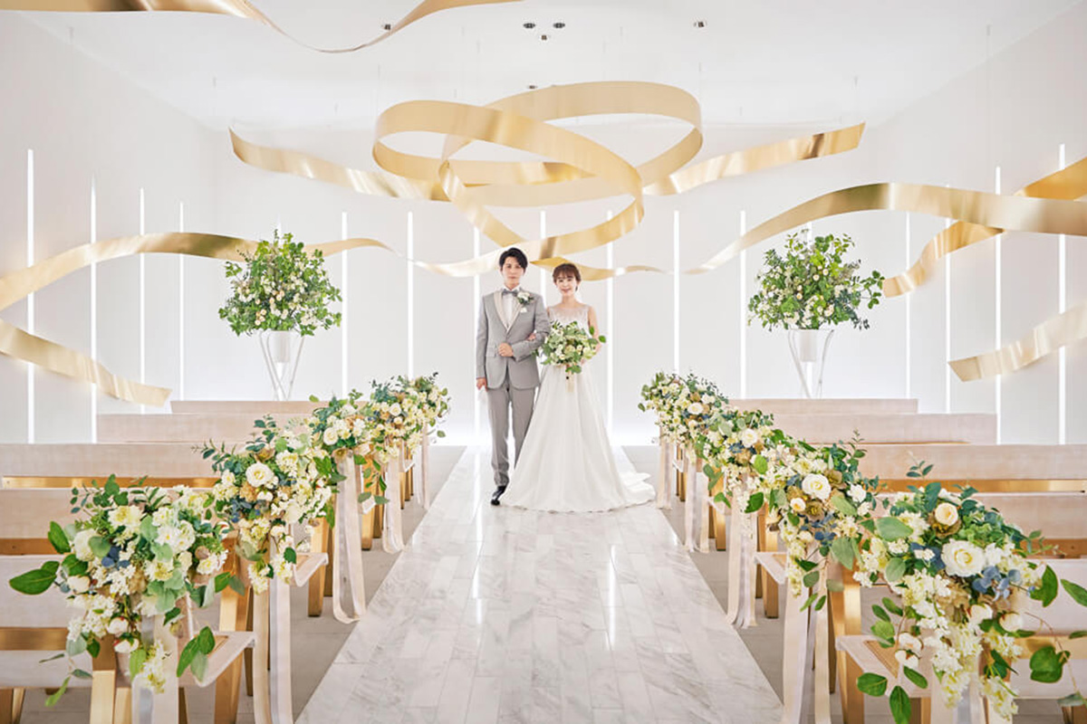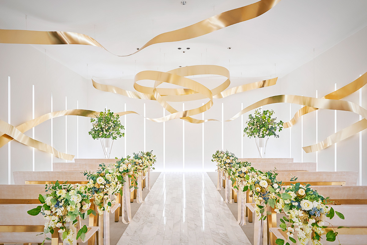 Just a 1-minute walk from Omiya Station, one of Japan’s major terminal hubs served by over 10 train lines.With excellent access from the Tohoku, Hokuriku, and Northern Kanto regions, and only about 20 minutes from Tokyo, this location is exceptionally convenient for gathering guests.The chapel features a clean, elegant design inspired by ribbons, creating a warm and intimate atmosphere ideal for small weddings.A dress salon and photo studio are conveniently located on-site, allowing couples to prepare for their wedding seamlessly without the need to travel between venues.