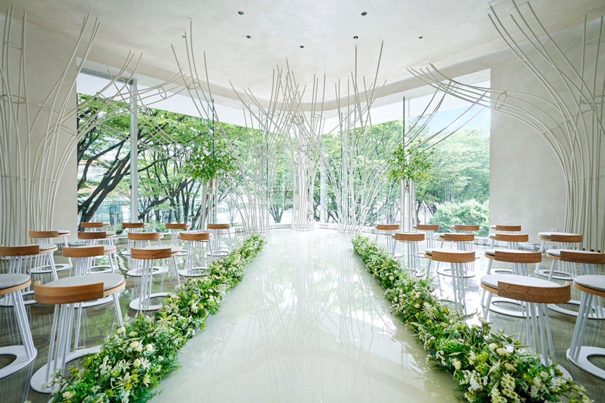 For an intimate wedding in the “City of Trees,” Sendai, Petit Wedding Sendai Chapel offers the perfect setting for a small and meaningful ceremony.Surrounded by the iconic zelkova tree-lined Jozenji-dori Avenue, the chapel provides a serene atmosphere where couples can celebrate with their closest loved ones.The design concept is inspired by the silhouettes of trees, blending natural elements with modern interior styling to beautifully highlight the couple.Throughout the space, organic forms and warm textures echo the surrounding greenery, creating a welcoming environment that brings the feeling of the outdoors gently inside.