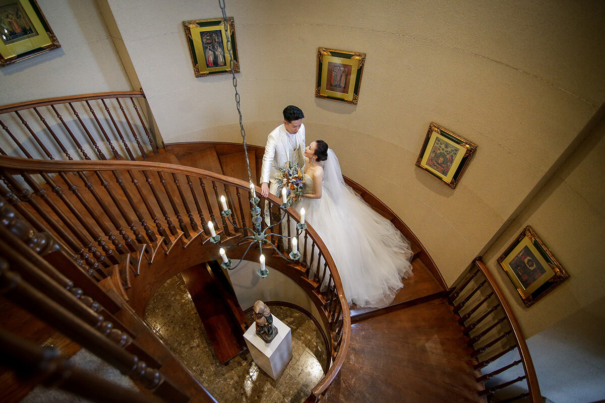 A grand cathedral featuring one of the largest stained glass installations in the Tohoku region sets the stage for a truly elegant wedding ceremony.Brilliant, multicolored light pours through the stained glass, illuminating a pure white wedding dress and creating a magical, unforgettable moment.Inspired by medieval European churches, the cathedral’s refined color palette and classic design evoke a solemn, dignified atmosphere that deepens the emotional impact of the ceremony.Located about 30 minutes by car from central Sendai, the venue offers an easy escape from the city—allowing couples and guests to relax and enjoy a peaceful, unhurried time in a calm suburban setting.